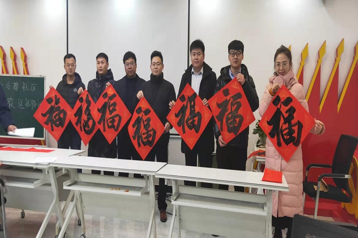 貼“?!弊郑怯麓罕夭豢缮俚膫鹘y(tǒng)項(xiàng)目。每年年末,不少書(shū)畫(huà)藝術(shù)家都會(huì)走出書(shū)齋,以送“?!钡男问絹?lái)祈福新年。為弘揚(yáng)中華優(yōu)秀傳統(tǒng)文化,迎接新春佳節(jié)的到來(lái),近日,恒大名都社區(qū)黨支部邀請(qǐng)山東省商業(yè)職業(yè)技術(shù)學(xué)院書(shū)畫(huà)教研室曹懷義主任及多位社區(qū)書(shū)法愛(ài)好者走進(jìn)濟(jì)南幸福城小區(qū)揮毫潑墨,為居民送“?!钡郊摇D茉醇瘓F(tuán)機(jī)關(guān)黨員、入黨積極分子等20余人參加此次活動(dòng)。